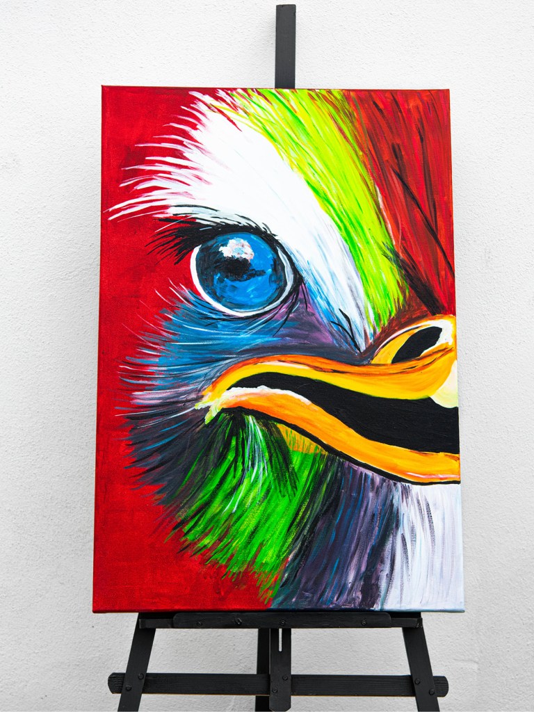 Acrylic paint on canvas in wooden frame