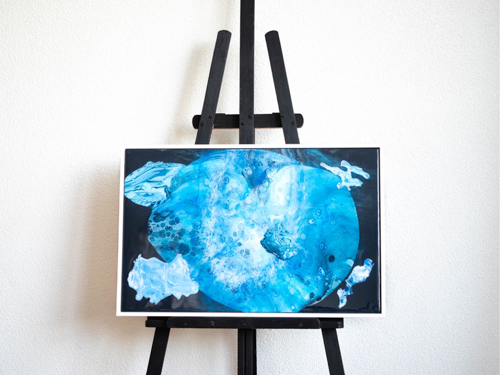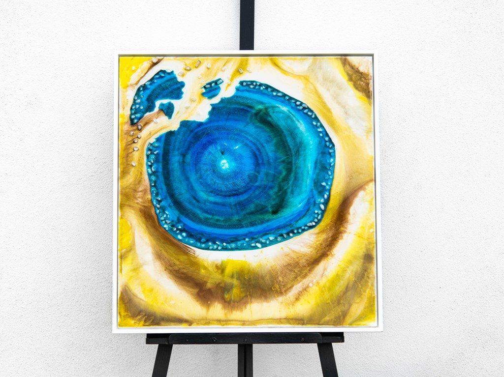 Acrylic and Epoxy on canvas in wooden frame